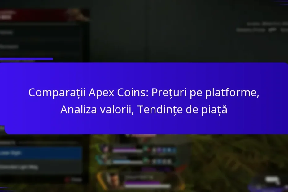 Apex Coins sunt moneda premium din jocul Apex Legends, permițând jucătorilor să achiziționeze articole cosmetice, pase de bătălie și alte îmbunătățiri. Prețurile pentru Apex Coins variază între platforme din cauza unor factori precum strategiile de… Comparații Apex Coins: Prețuri pe platforme, Analiza valorii, Tendințe de piață